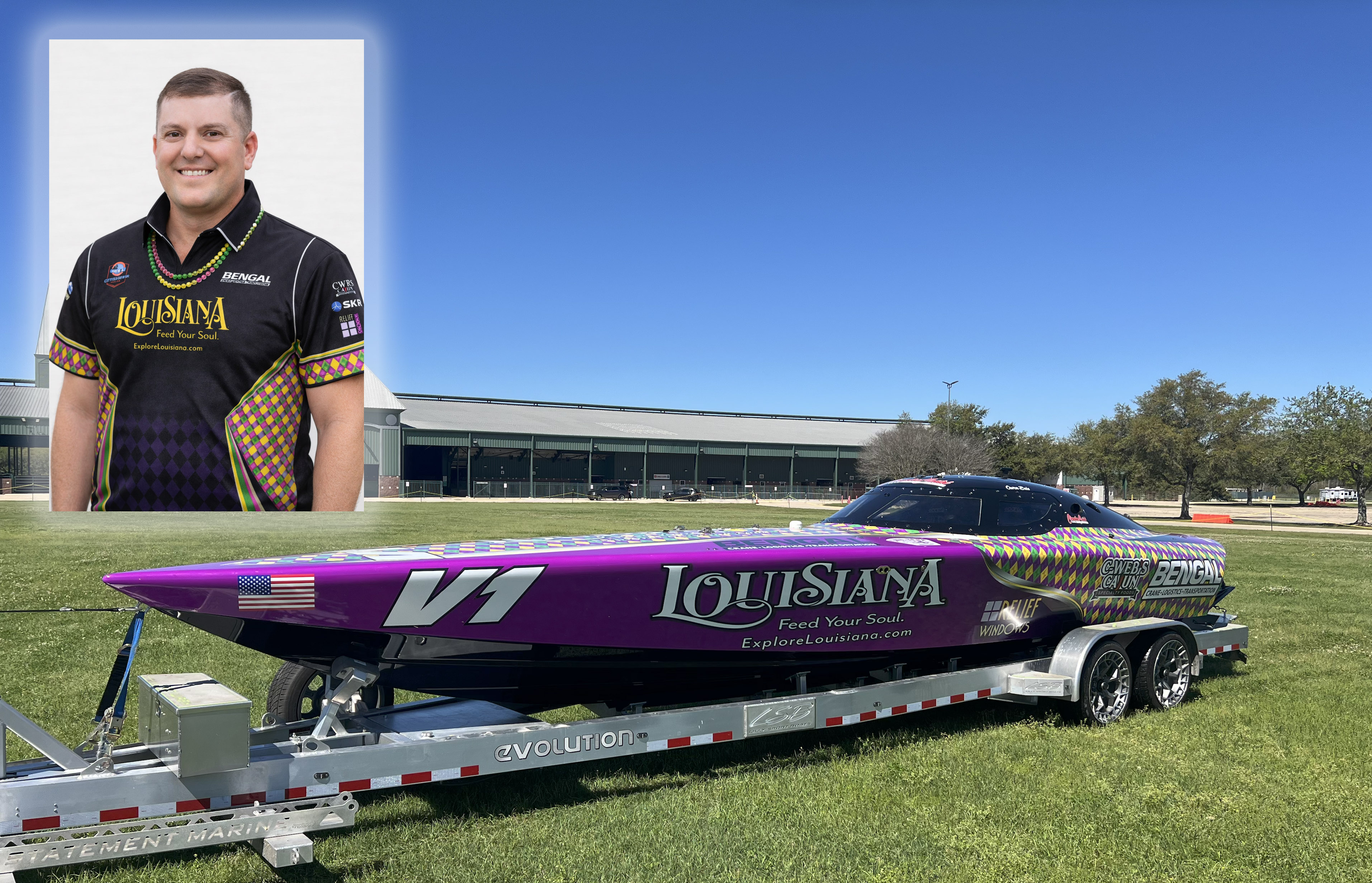 Dustin Clouatre, owner of the cajun-style restaurant Blind River Bar, has unveiled images of his newest acquisition: the 29-foot Louisiana, which he will race in Modified Vee class this season alongside throttleman Owen Buis. The boat, formerly raced as Hurricane of Awesomeness, has been freshly wrapped and is ready to rock offshore’s season opener in St. Petersburg, FL.