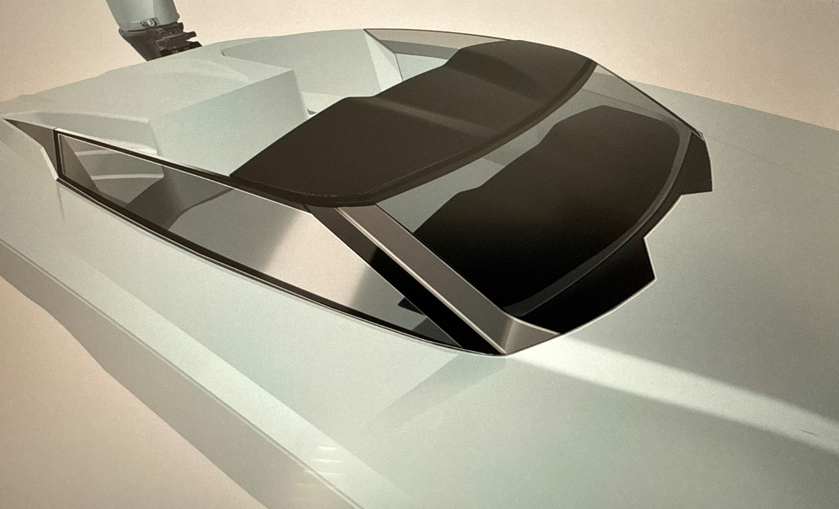 Design played an equally central role in the development of the 4T. Under Jones’ direction, the catamaran adopts an aerospace-inspired aesthetic, with faceted geometric hull surfaces engineered to reduce drag by 15% while improving structural rigidity. The cockpit layout emphasizes ergonomics and accessibility, featuring a center-console-inspired configuration, an automotive-style windshield register, and a dedicated stepped entry system for safer and easier boarding.
